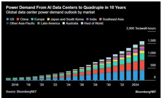 - 국가별 정책 경쟁: 미국·중국이 전력 인프라와 데이터센터 확충에서 주도권을 다투며, 유럽은 ESG·탄소중립 정책과 병행하는 방식으로 차별화.