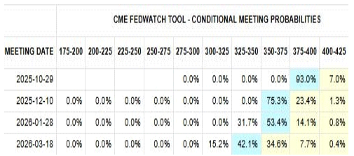 :10 월, 12 월 기준금리 인하 기대감은 여전히 높게 평가. 10 월 인하 가능성은 93.0%까지 높아지며 추가 인하 기대감은 여전. 2026 년 기준금리 인하 속도에 대한 경계는 지속되고 있으나, 방향성 차원에서 점진적 인하 가능성 높게 평가되는 상황
