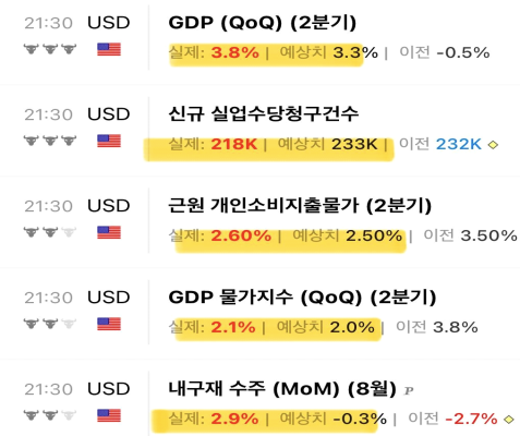 :미국 2 분기 GDP 가 전분기대비 3.8% 증가하며 예상치였던 3.3%를 상회