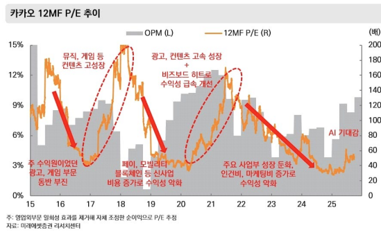 # (by 미래에셋증권) 카카오 12MF P/E 추이