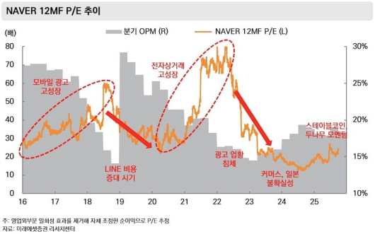 # (by 미래에셋증권) NAVER 12MF P/E 추이