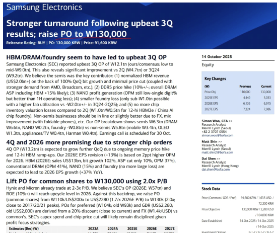 # (by 메릴린치) 삼성전자 목표주가 13 만원