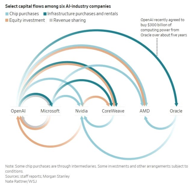 - WSJ, 상승기에는 서로 이익을 주지만, 투자 열기가 식으면 모든 연결고리가 동시에 타격을 받을 위험이 있다고 경고