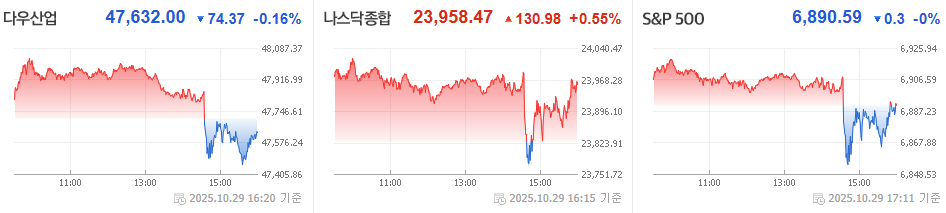 2025년 10월 29일 미국 증시는 혼조 이었습니다.