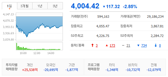 - 외국인도 3 일 연속 4 조 원에 달하는 현물 매도에 나서면서 변동성 확대를 자극. 선물 매도도 지속