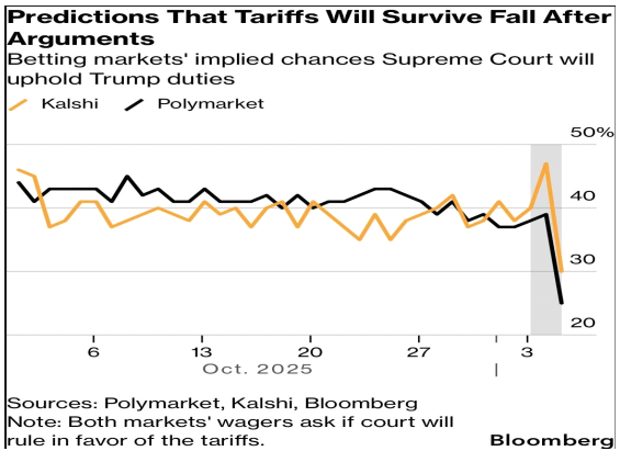 # 11/5 열린 대법원 심리에서는 트럼프가 IEEPA(국제 비상 경제 권한법)를 근거로 광범위하게 부과한 관세의 적법성에 대해 강한 회의감을 나타냄