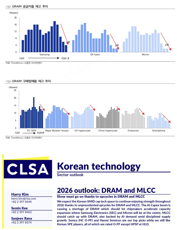 # (by 서화백의 그림놀이) 산업 분석 (CLSA) Korean technology (2026 outlook: DRAM and MLCC) 삼성전기, 한미반도체, 원익 IPS, 유진테크, 이오테크닉스, HPSP