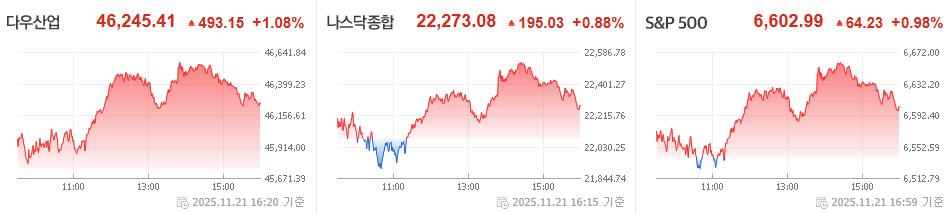2025년 11월 21일 미국 증시는 상승 이었습니다.