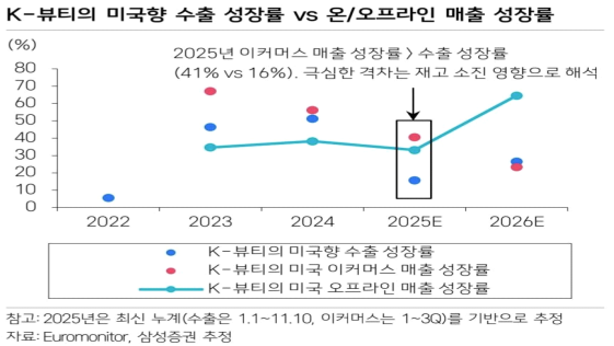 1) Ulta Beauty 등 대형 리테일러향 납품이 본격화되며, K-뷰티의 오프라인 시장침투율 4% 도달, 오프라인 매출 성장률 +65% y-y 기대됩니다.