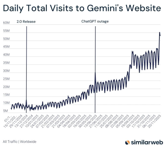 :Gemini 3 릴리즈로 한 번 더 폭증