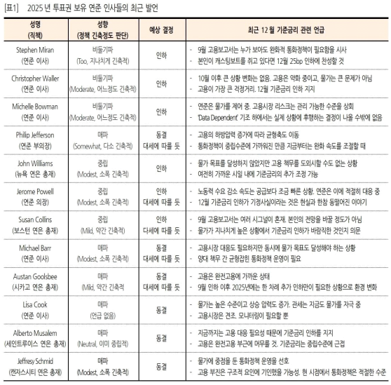 # (by 한화투자증권) :연준 투표권 보유자들 기준으로 보았을 때, 12 월 기준금리 인하론자들이 소폭이나마 우세