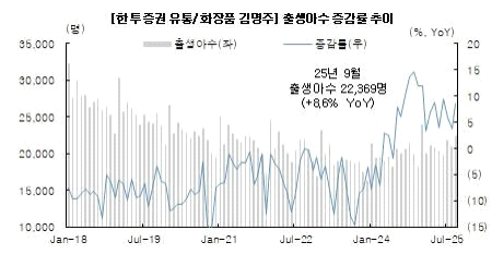 - 이에, 2026 년 화장품 업종 실적 모멘텀은 2025 년보다 확대될 가능성이 크다며, 이는 2025 년보다 높은 수출 증가율이 핵심이라고 밝힘. 미국과 유럽 등지 오프라인 채널 진출이 본격화되고 있고, 색조와 바디/헤어 등 신규 카테고리 확장까지 감안하면 2026 년 이들 지역으로 수출 증가율은 결코 둔화될 것 같지 않다고 설명. 중남미가 신규 수출 지역으로 선적량이 가파르게 늘고 있으며, 중국이 YoY 0% 이상으로 버텨준다면 2026 년 수출 증가율은 YoY 15%를 훌쩍 넘을 수도 있다고 밝힘