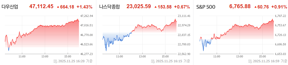 2025년 11월 25일 미국 증시는 상승 이었습니다.