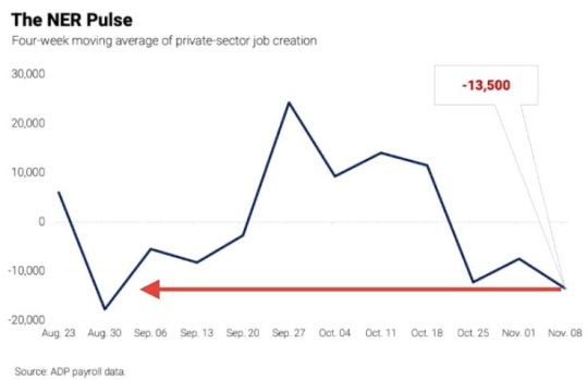 :11/8 마감된 4 주 동안 민간 고용주들은 주당 평균 -13.5k 일자리를 감축. 월평균으로는 -52k 로 산출됨