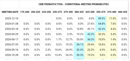 :고용 약화 시사에 12 월 금리 인하 확률 페드워치 기준 89%로 기정 사실화. 경기 침체 우려 역시 감소