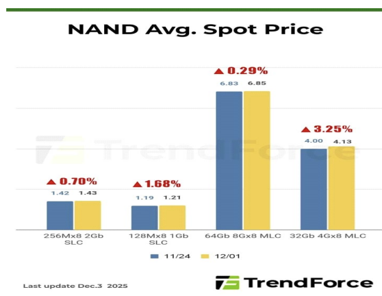 극심한 공급 부족과 가격 상승 전망에 따라, 현물 시장에서는 하루 사이에도 호가가 수차례 변경되는 빈번한 조정이 목격되고 있습니다. 일부 판매자들은 더 높은 수익을 챙기기 위해 자신의 평판(신용)을 희생하면서까지 이전에 확정된 체결 가격을 거부하고 새로운 가격 협상을 요구하고 있습니다. 이는 현물 시장 내의 '패닉 바잉(공황 매수)' 주문 강도가 얼마나 격화되고 있는지를 여실히 보여줍니다. 이번 주 512Gb 칩의 현물 가격은 5.90% 상승하여 9.607 달러를 기록했습니다.
