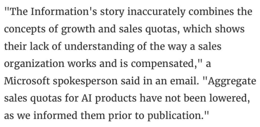 - 3 일(현지시간) 美 IT 전문매체 디 인포메이션은 마이크로소프트(MS)가 일부 AI 에이전트 제품에 대해 매출 성장 목표치를 낮추고 영업사원들의 판매 할당량을 줄였다며 MS 가 특정 제품의 판매 할당량을 낮춘 것은 이례적인 일이라고 보도했음. MS 가 이처럼 조치한 제품은 기업용 AI 플랫폼 '파운드리' 등이며, 해당 제품의 매출 목표가 달성되지 못하자 올해 목표치는 절반으로 조정된 것으로 전해짐
