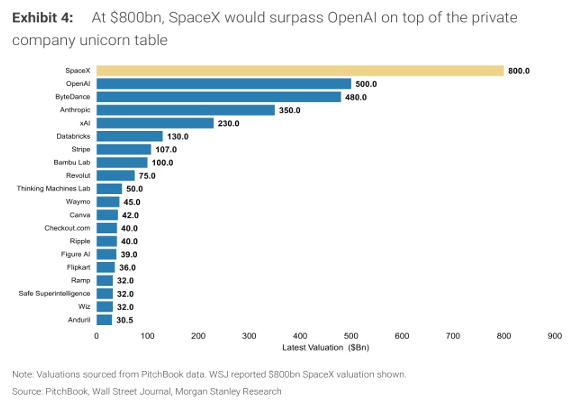 모건스탠리) 스페이스 X의 $800B 밸류? 우주 데이터센터?