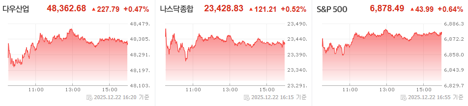 2025년 12월 22일 미국 증시는 상승 이었습니다.