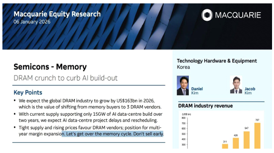 # SK 하이닉스, 삼성전자 (맥쿼리) DRAM crunch to curb AI build-out Heaping up huge memory profits Runaway memory prices