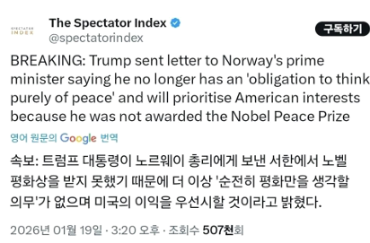 - 그린란드 사태로 미국과 유럽의 갈등이 깊어지고 있는 가운데, 미국과 캐나다의 공동 우주방위 기구인 북미항공우주방위사령부(NORAD)가 그린란드로 군용기를 보냈다고 발표했음. 외신에 따르면, 19 일(현지시간) NORAD 는 성명을 통해 NORAD 소속 군용기들이 그린란드에 있는 피투피크 미 공군 우주기지에 곧 도착할 것이라고 밝힘. NORAD 는 북미 대륙을 향한 공중·우주 위협을 탐지·대응하는 임무를 맡은 미국과 캐나다의 공동 방위사령부로, 미군과 캐나다군 장성이 공동 지휘하며, 관할 지역은 알래스카, 캐나다, 미국 본토라고 알려짐. 이와 관련, NORAD는 "군용기들은 미국과 캐나다, 덴마크 왕국 간의 지속적인 방위 협력을 바탕으로 오랫동안 계획된 활동들을 지원할 것"이라고 설명