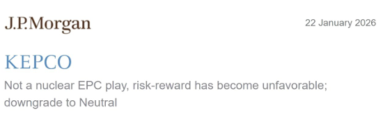 # (by 서화백의 그림놀이) J.P. 모건) 한국전력 중립으로 하향; 원전 건설 관련주는 아님.