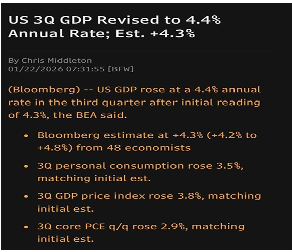 :미국 지난해 3 분기 GDP 성장률 4.4%. 4 분기 추정치도 강력한 성장세 예고(5%???). 노랜딩 시나리오에 경기 기대