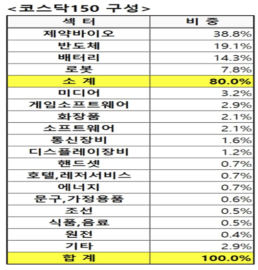 :금융투자 수급은 개인 ETF 순매수 확대로 인함. ETF 매수=지수 바스켓 매수. 대형주 상승. 코스닥150 내 하락종목 3종목 뿐