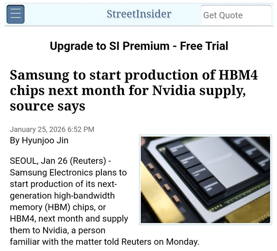 3. 삼성전자, 엔비디아·AMD HBM4 최종 품질 테스트 통과 소식 등에 반도체 상승